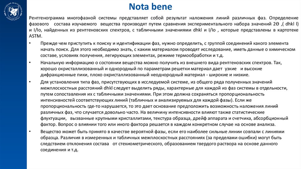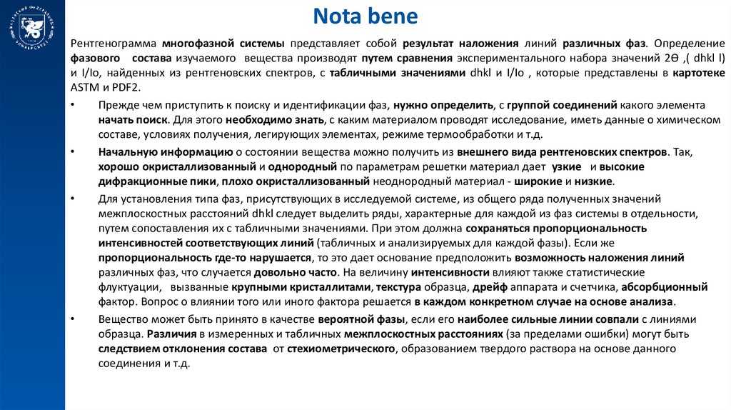 Nota beneРентгенограмма многофазной системы представляет собой результат наложения линий различных фаз. Определение
