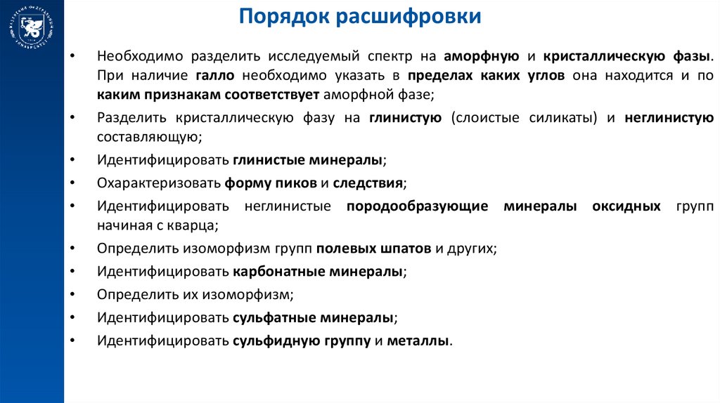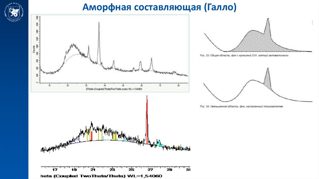 Порядок расшифровкиНеобходимо разделить исследуемый спектр на аморфную и кристаллическую фазы.