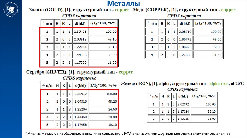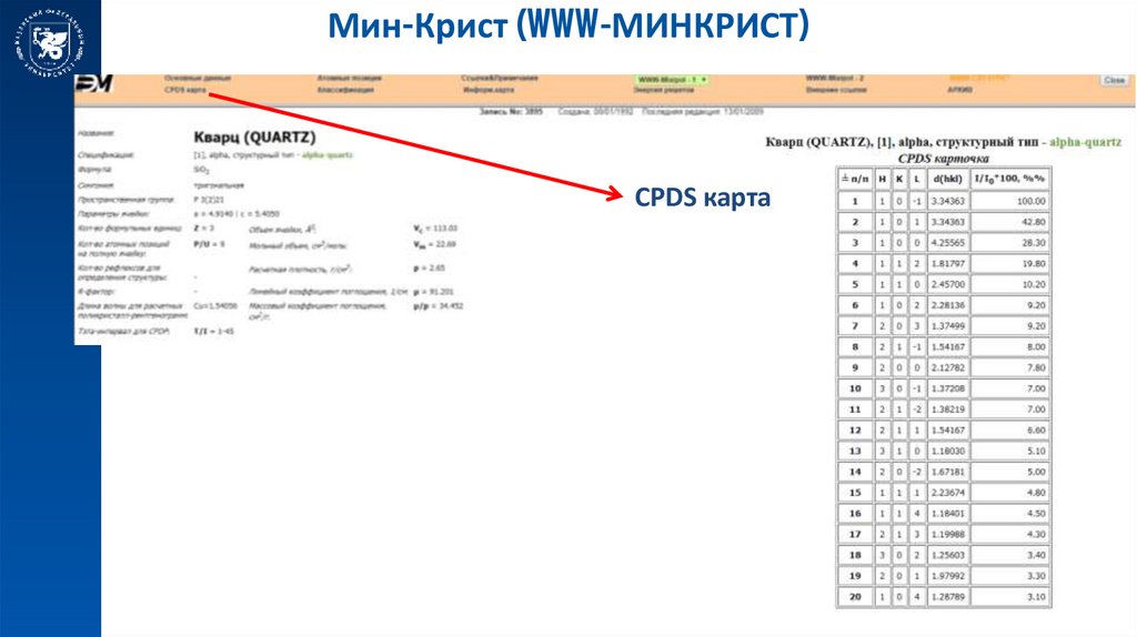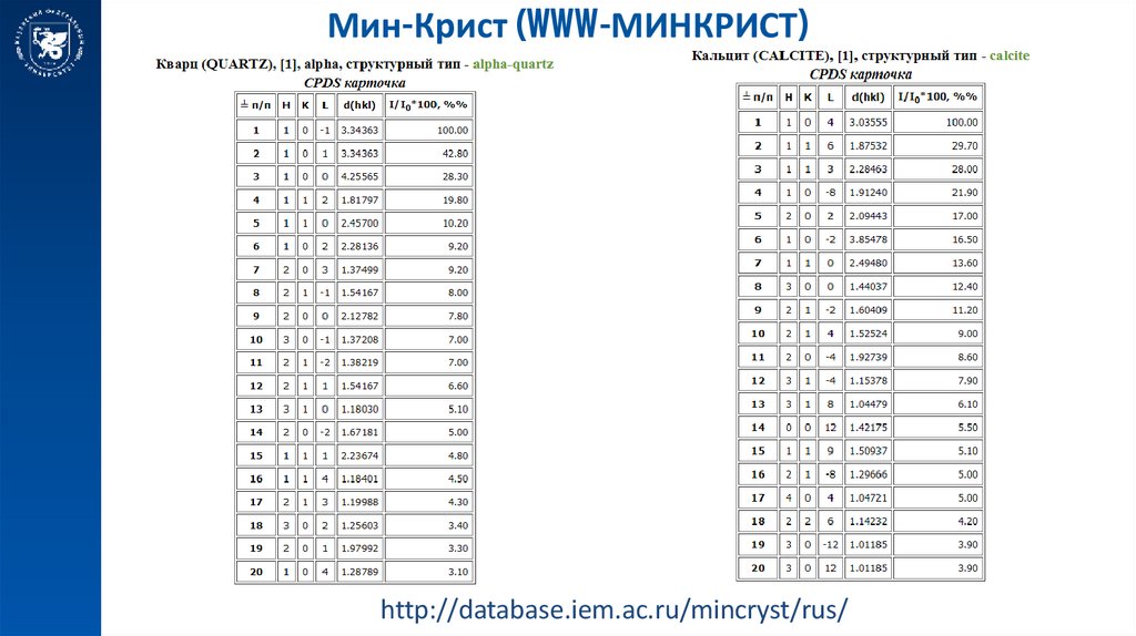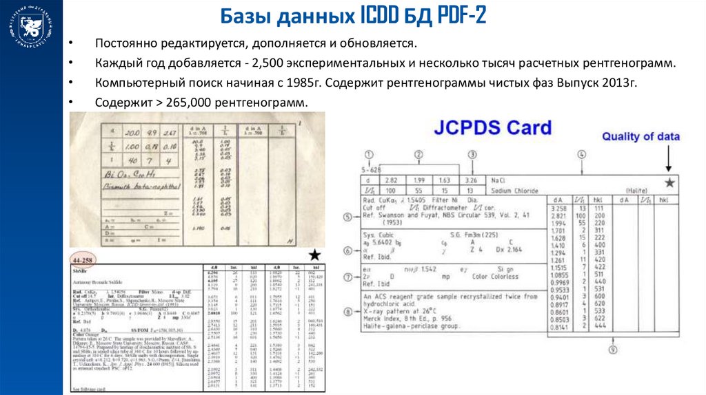Базы данных ICDD БД PDF-2Постоянно редактируется, дополняется и обновляется.