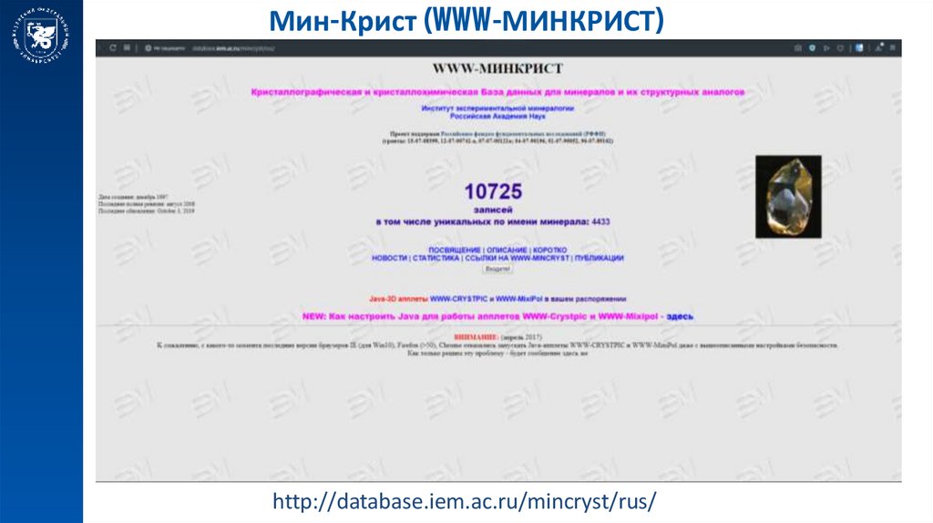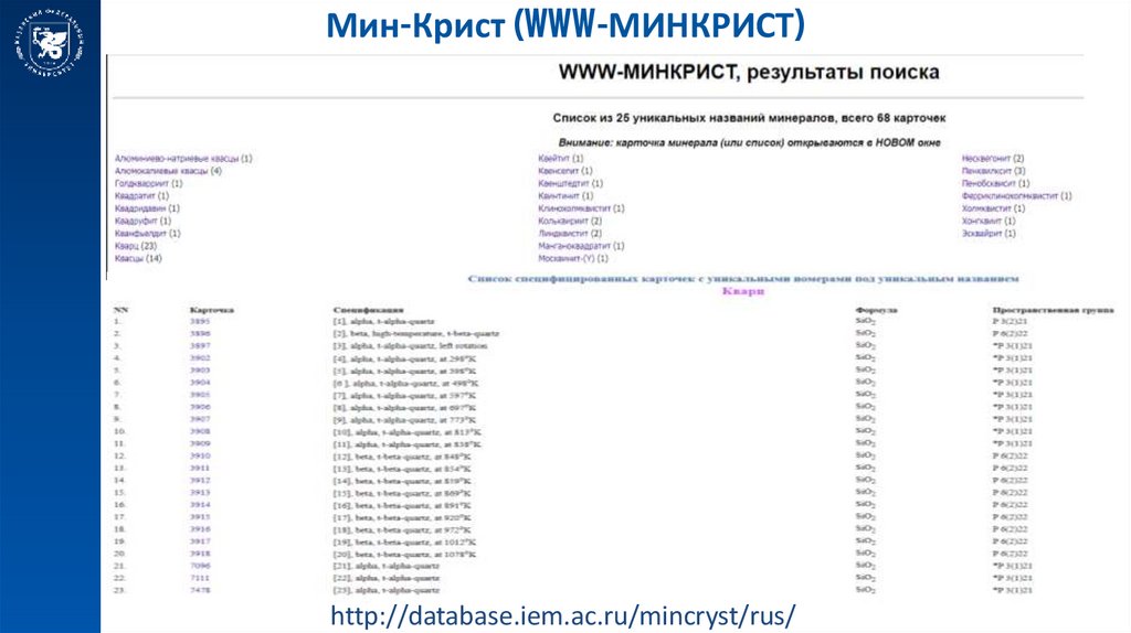 Мин-Крист (WWW-МИНКРИСТ)http://database.iem.ac.ru/mincryst/rus/