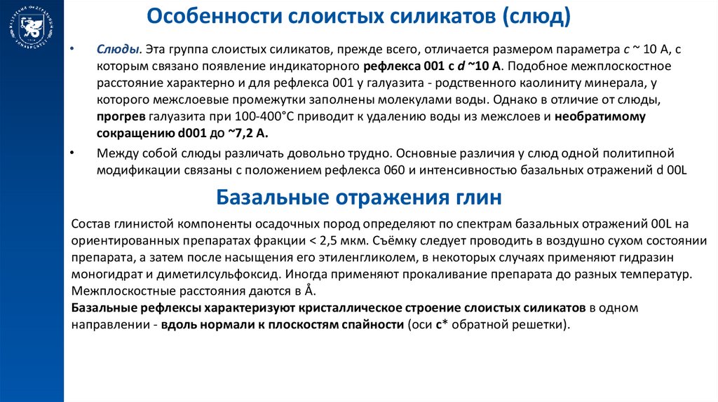 Разделить кристаллическую фазу на глинистую (слоистые силикаты) и неглинистую