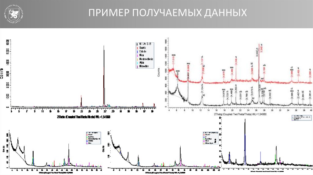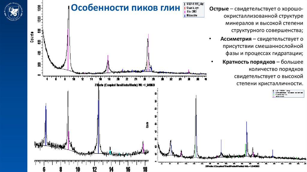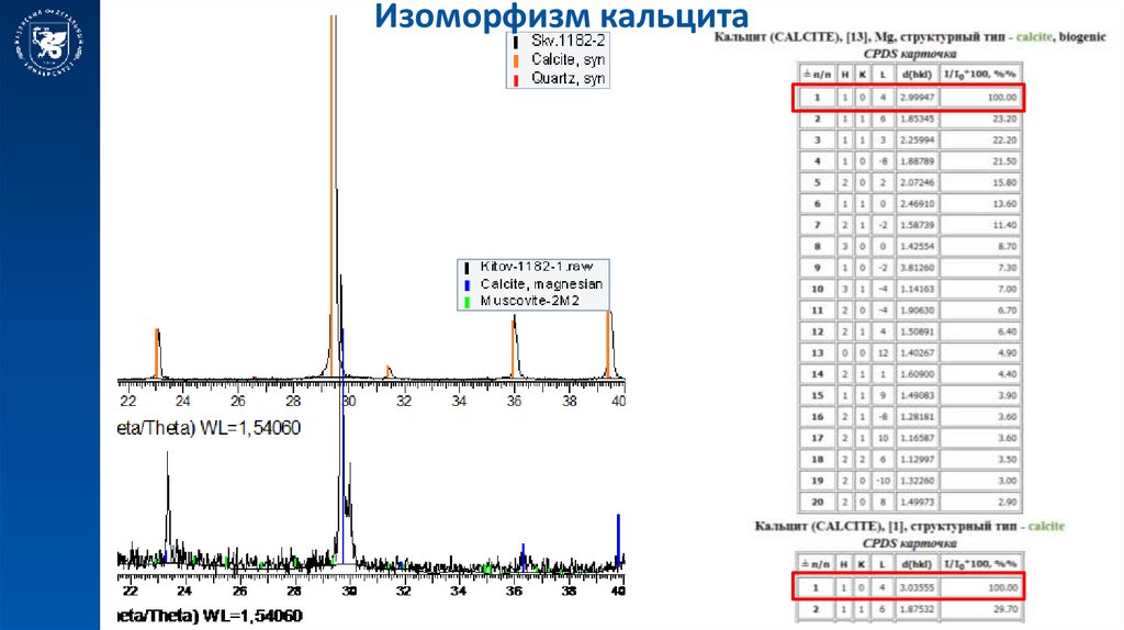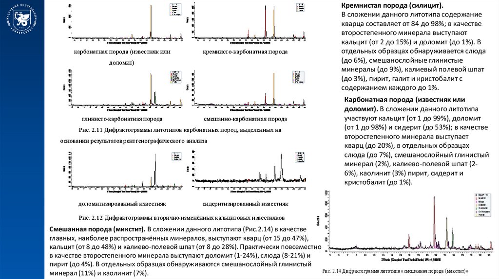 Рис. 2.12 Дифрактограммы вторично-изменённых кальцитовых известняков