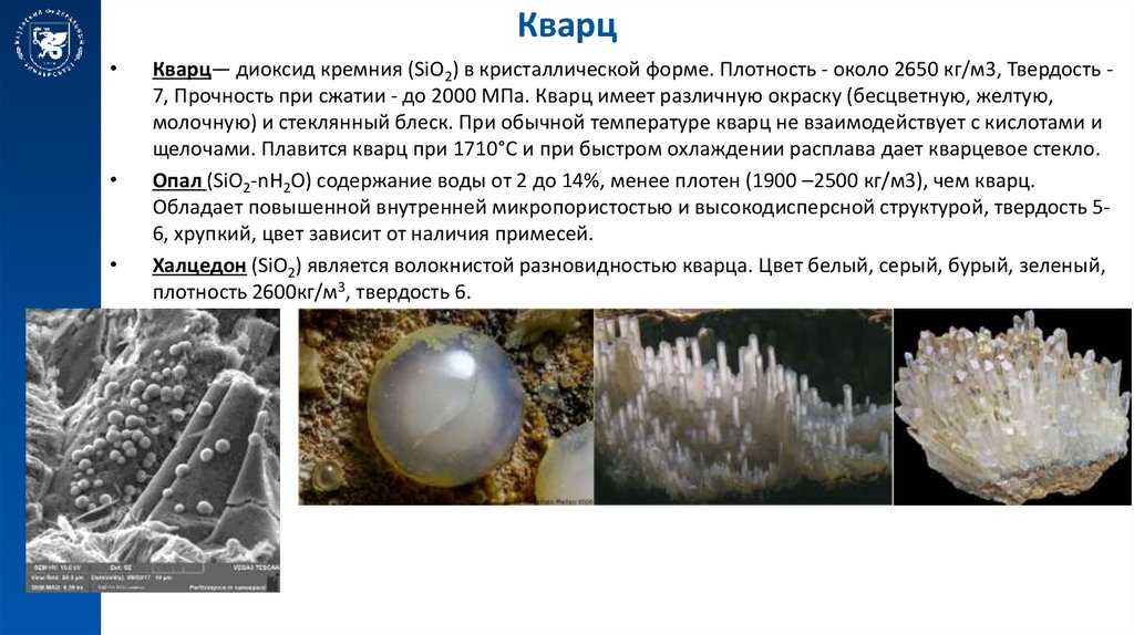 главных, наиболее распространённых минералов, выступают кварц (от 15 до 47%),