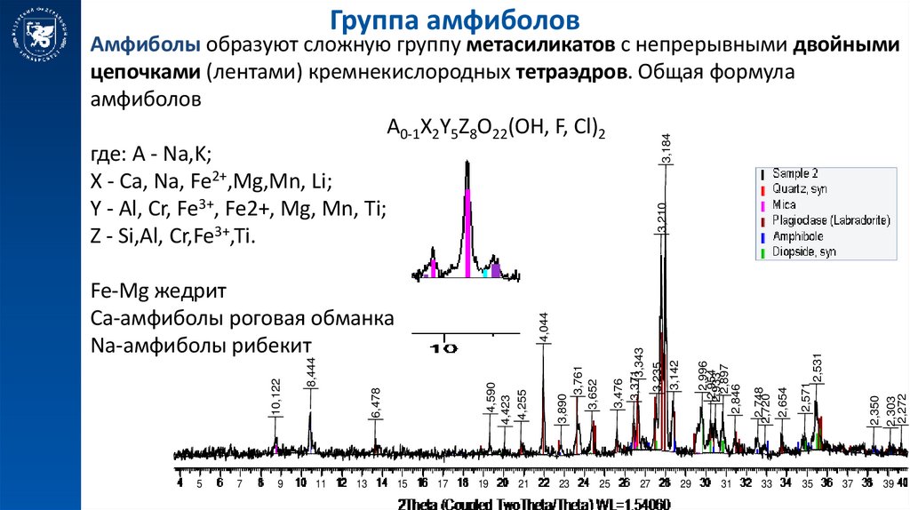 Рис. 2.14 Дифрактограмма литотипа «смешанная порода (микстит)»
