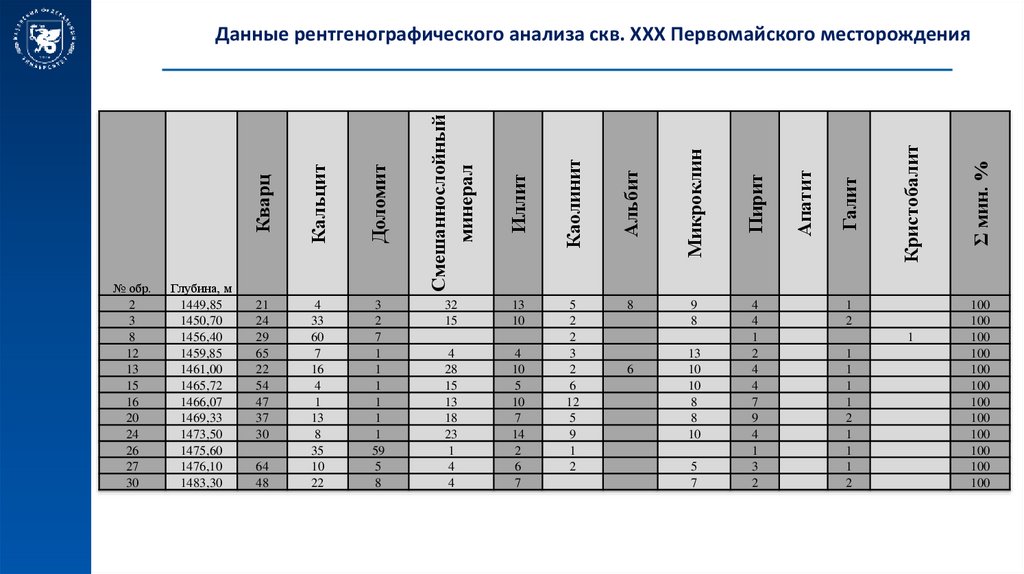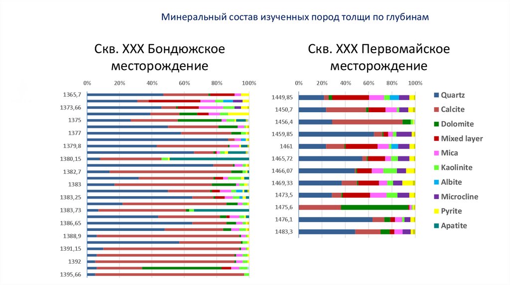пирит (до 4%). В отдельных образцах обнаруживаются смешанослойный глинистый