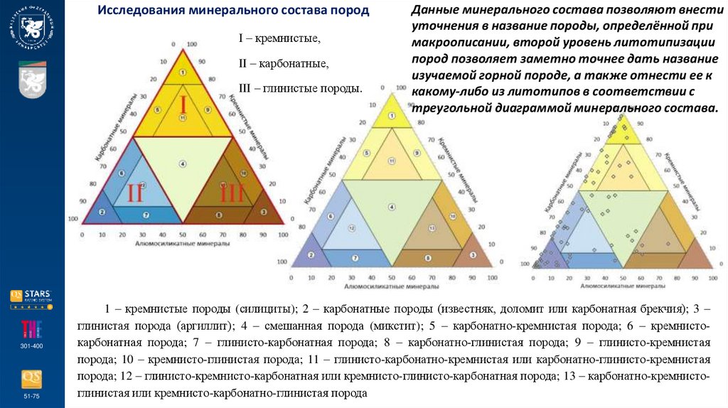 порода; 12 – глинисто-кремнисто-карбонатная или кремнисто-глинисто-карбонатная порода; 13 – карбонатно-кремнистоглинистая или кремнисто-карбонатно-глинистая порода