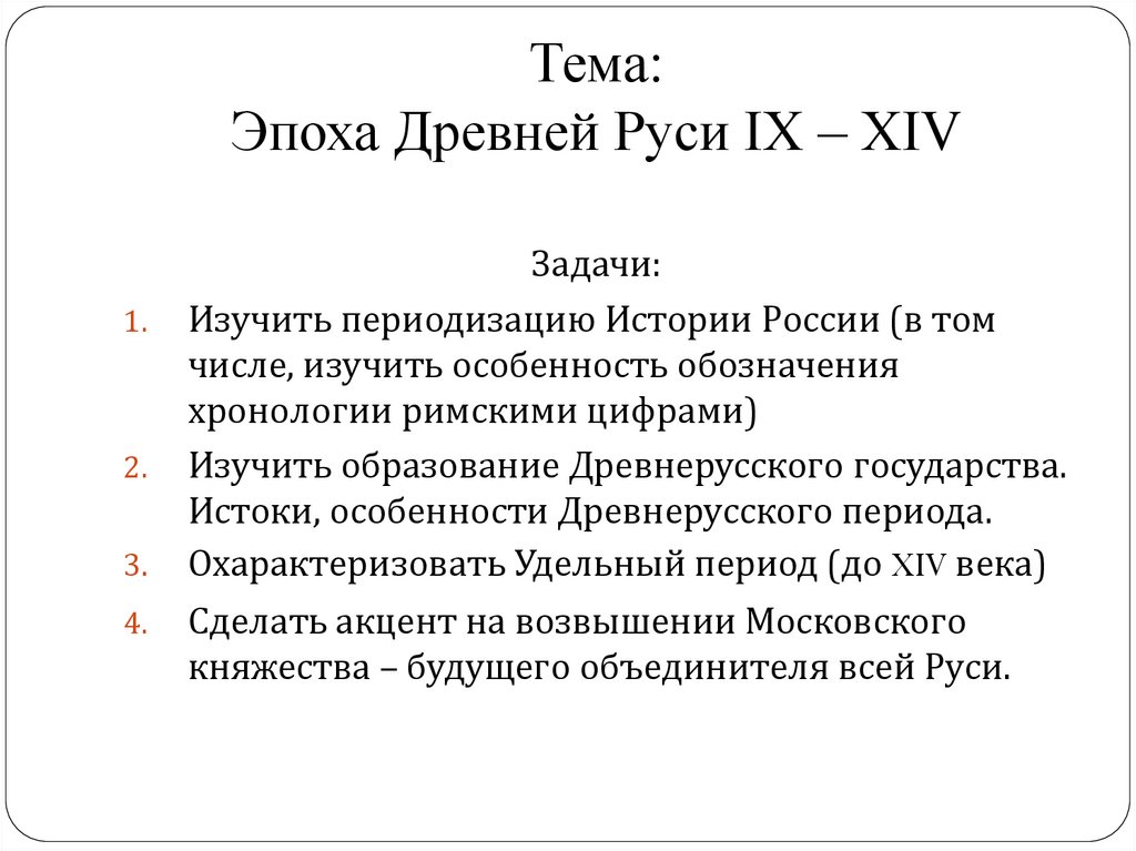 1. Тема: Эпоха Древней Руси IХ – ХIV