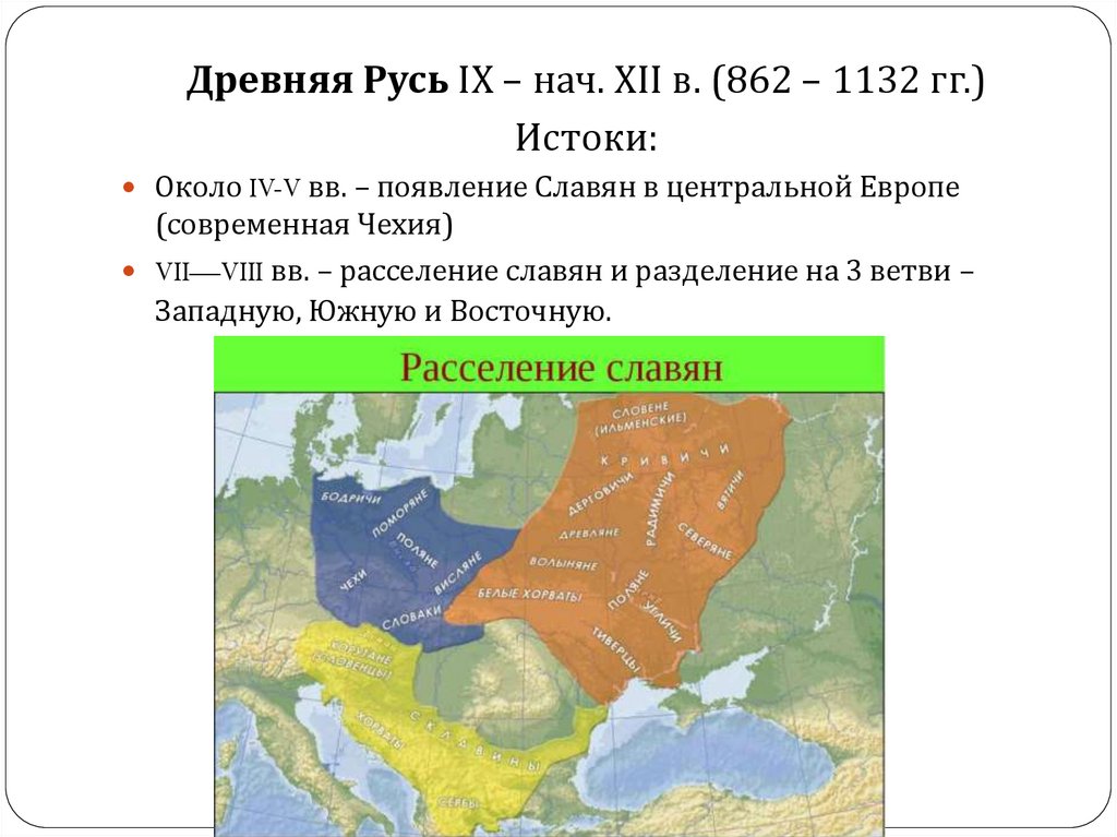 VII—VIII вв. – расселение славян и разделение на 3 ветви –