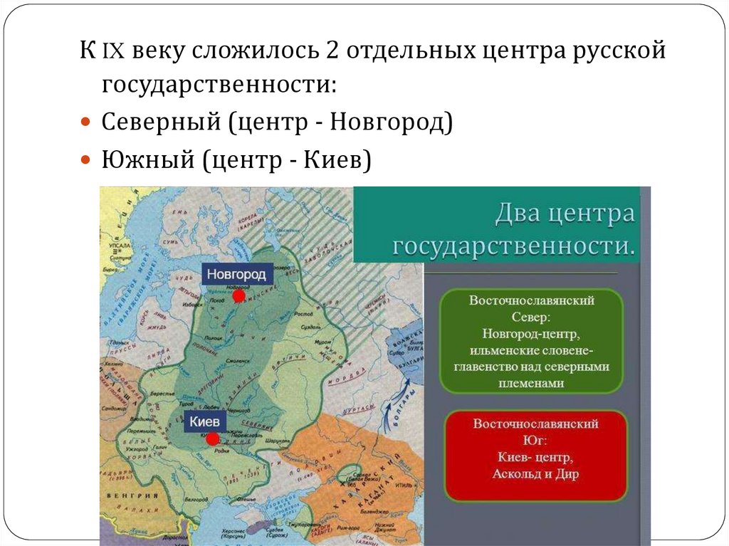 К IX веку сложилось 2 отдельных центра русскойгосударственности: