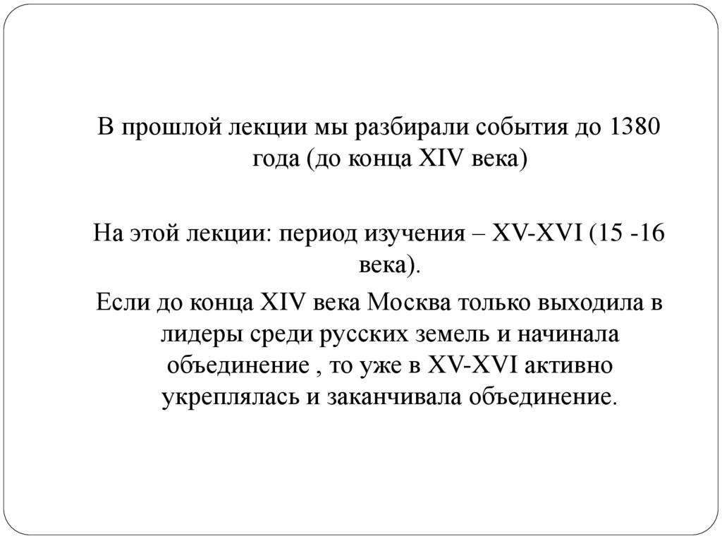 В прошлой лекции мы разбирали события до 1380года (до конца XIV века)