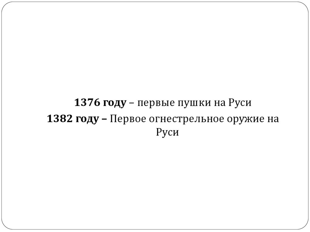 1376 году – первые пушки на Руси1382 году – Первое огнестрельное оружие на