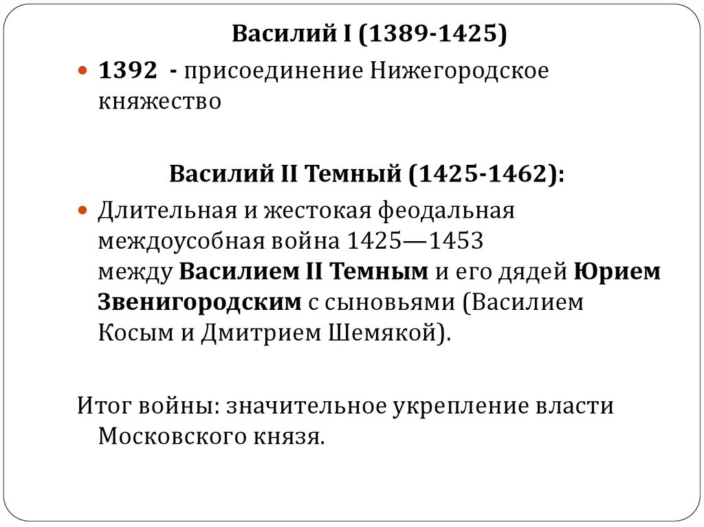 Василий I (1389-1425)1392 - присоединение Нижегородское