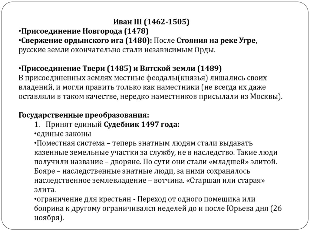 •Присоединение Твери (1485) и Вятской земли (1489)