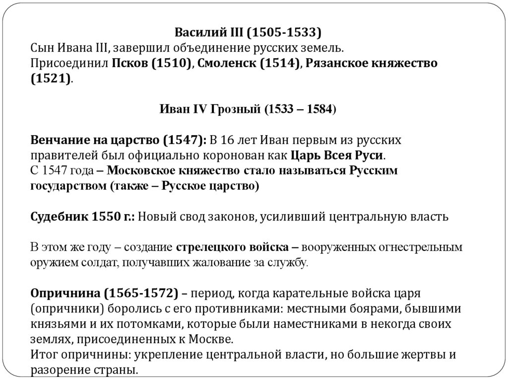 Присоединил Псков (1510), Смоленск (1514), Рязанское княжество