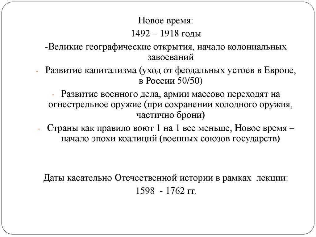 - Страны как правило воют 1 на 1 все меньше, Новое время –
