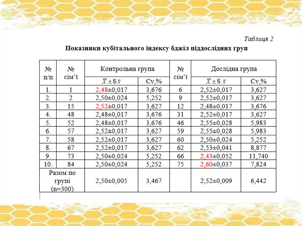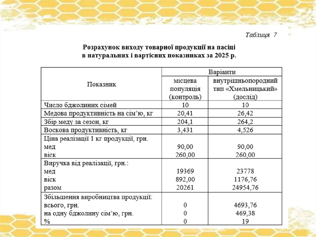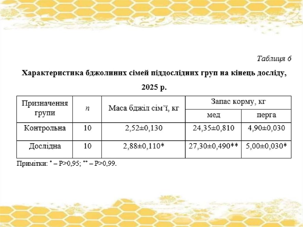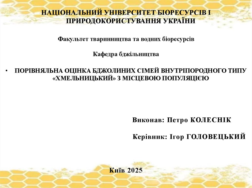 ПОРІВНЯЛЬНА ОЦІНКА БДЖОЛИНИХ СІМЕЙ ВНУТРІПОРОДНОГО ТИПУ