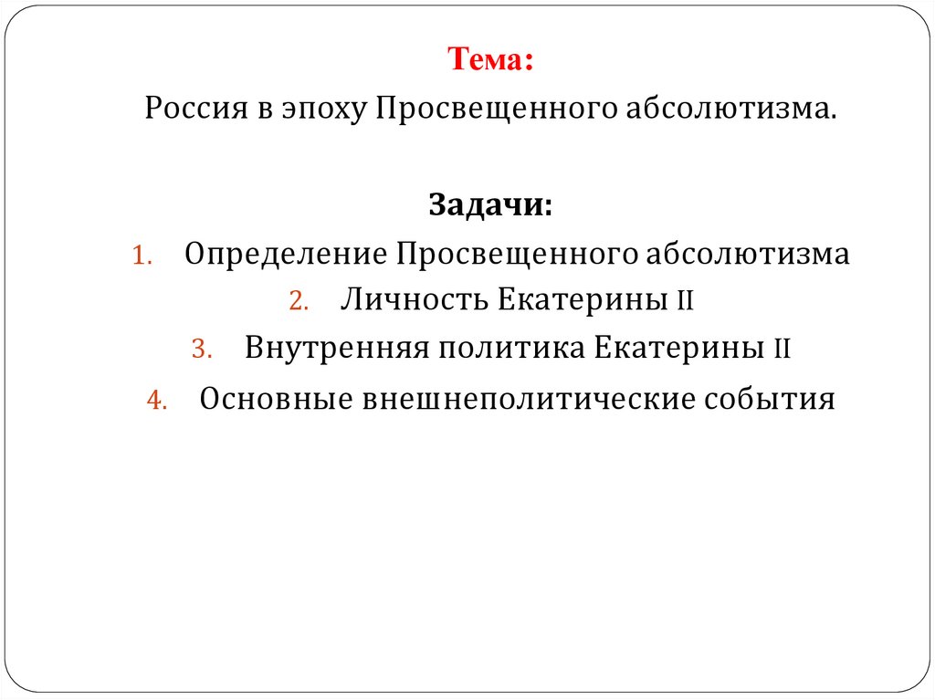 Тема:Россия в эпоху Просвещенного абсолютизма.