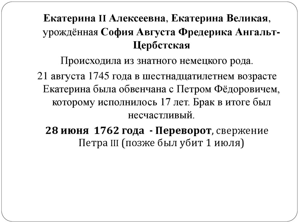 Екатерина II Алексеевна, Екатерина Великая,урождённая София Августа Фредерика АнгальтЦербстская