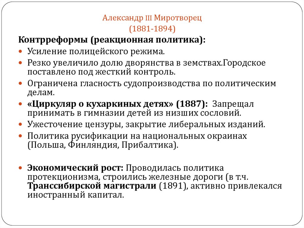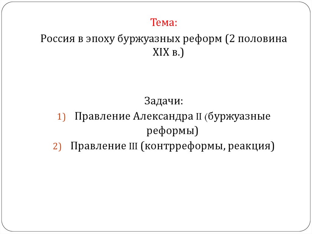 Тема:Россия в эпоху буржуазных реформ (2 половина