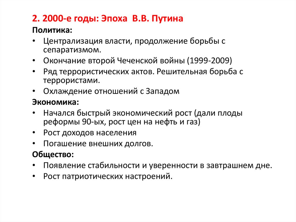 2. 2000-е годы: Эпоха В.В. ПутинаПолитика: