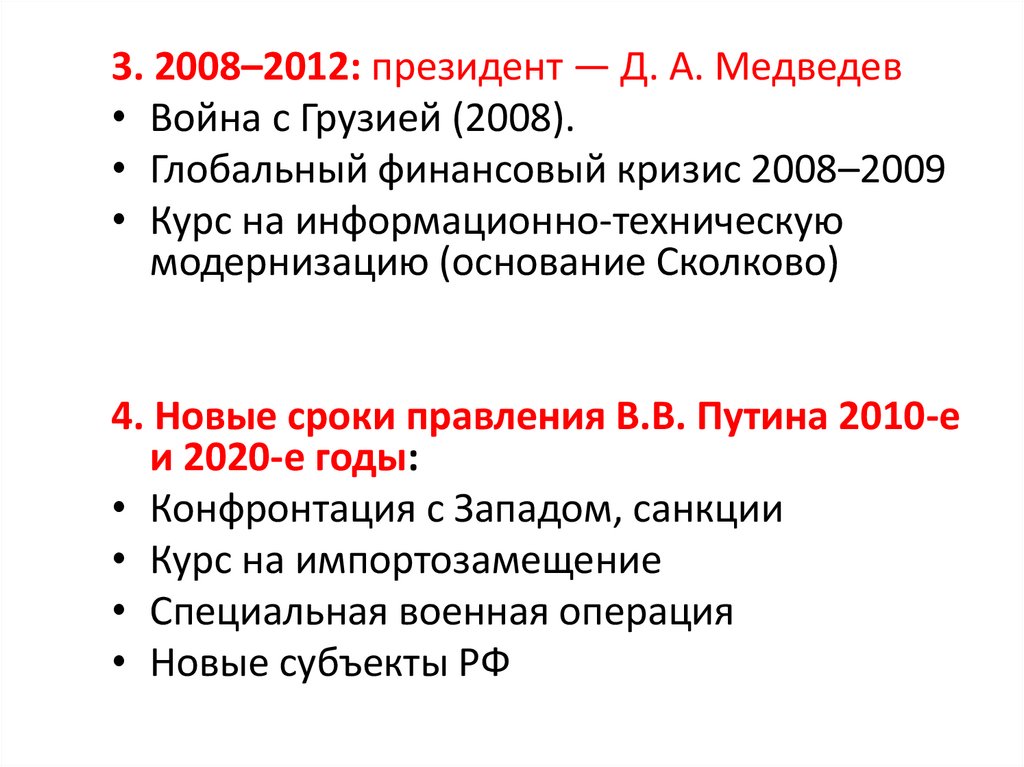 3. 2008–2012: президент — Д. А. Медведев• Война с Грузией (2008).