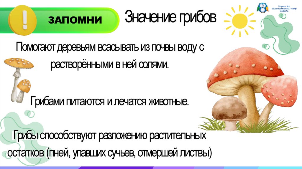 ЗАПОМНИЗначение грибов