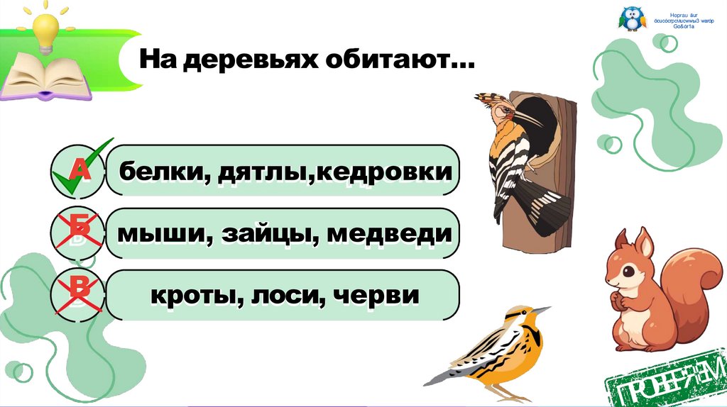 Весьлес –от верхушек до земли –заселён животными!Но