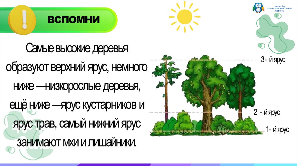 Укажите верхний ярус леса.