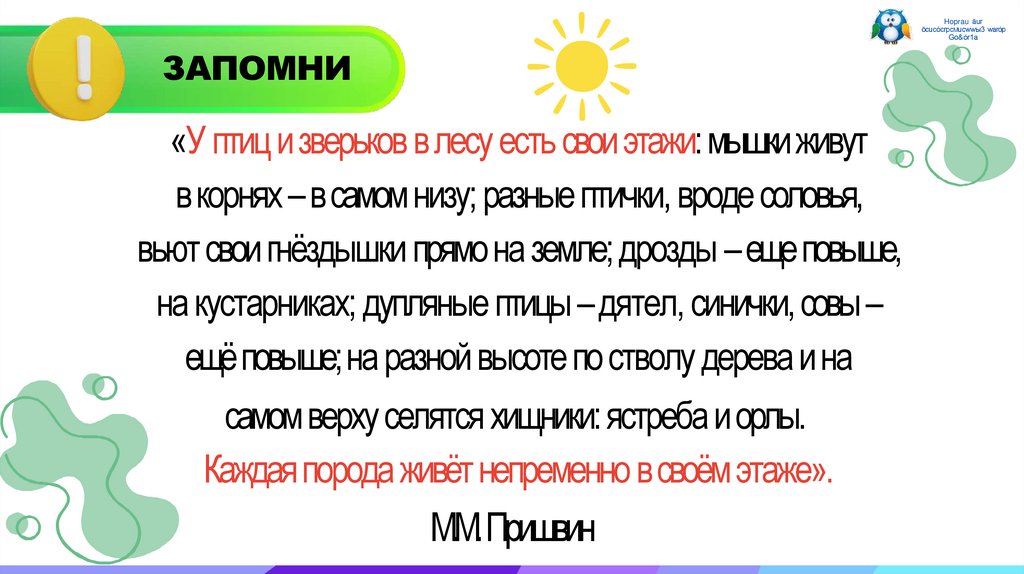 «У птиц изверьков влесу есть свои этажи: мышкиживут