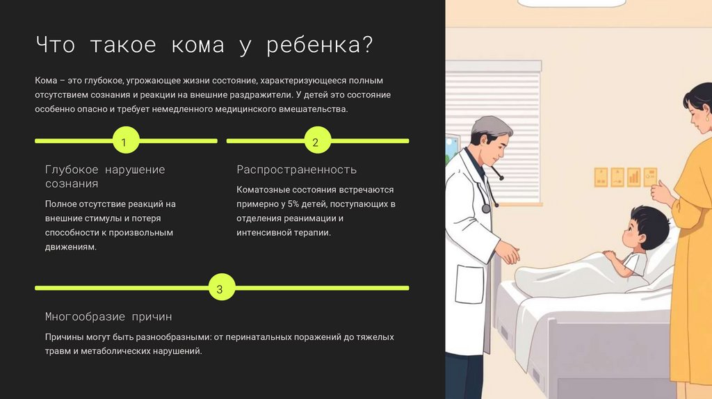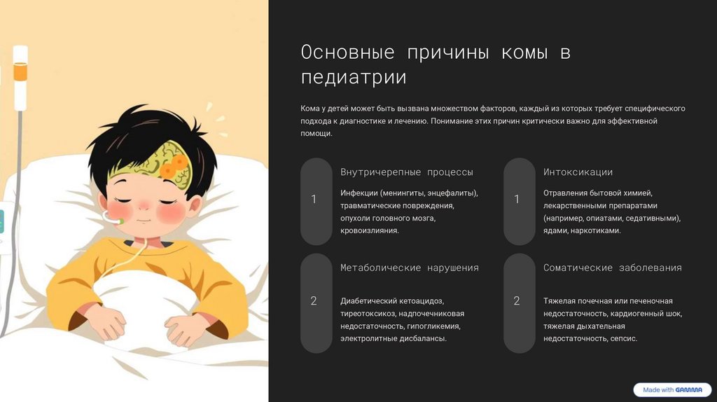 Кома у детей может быть вызвана множеством факторов, каждый из которых требует специфического
