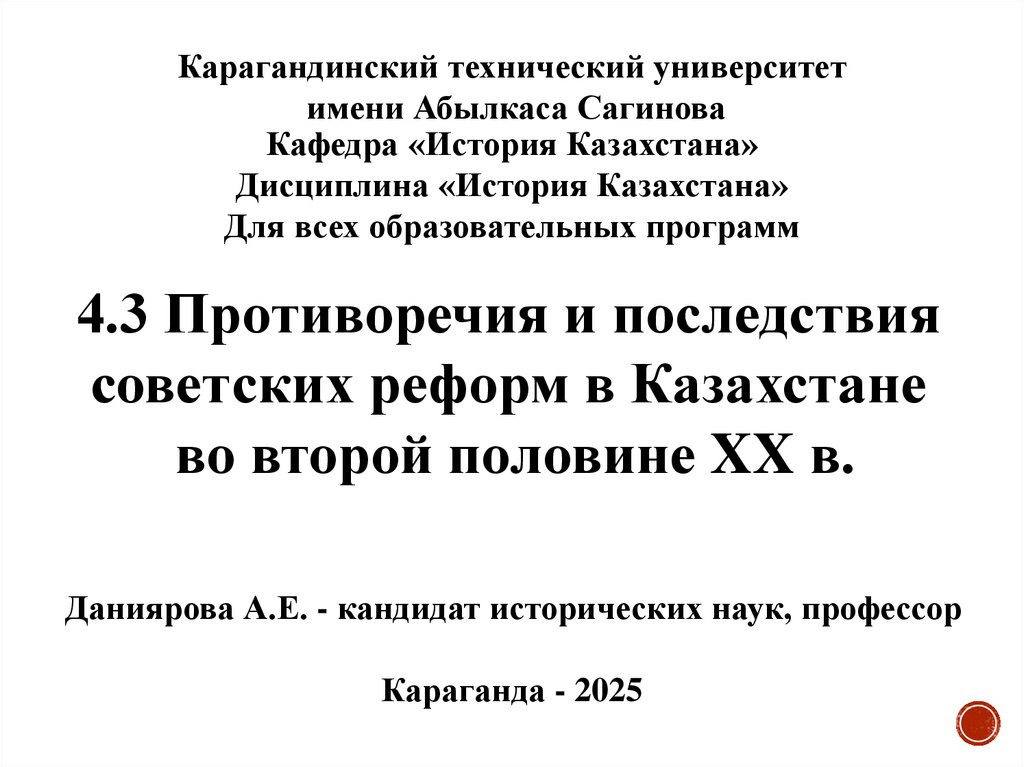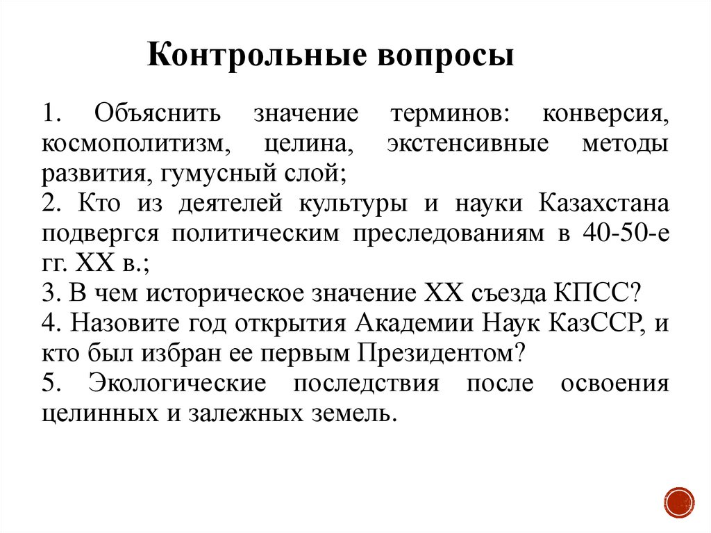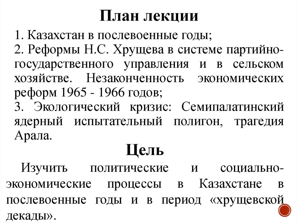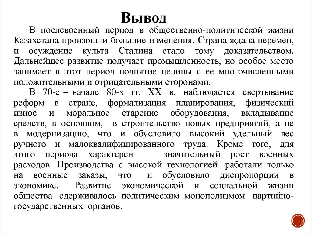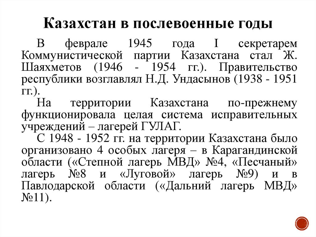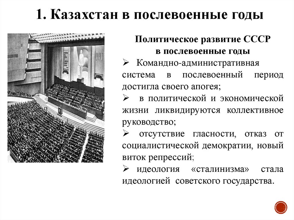 1. Казахстан в послевоенные годыПолитическое развитие СССР