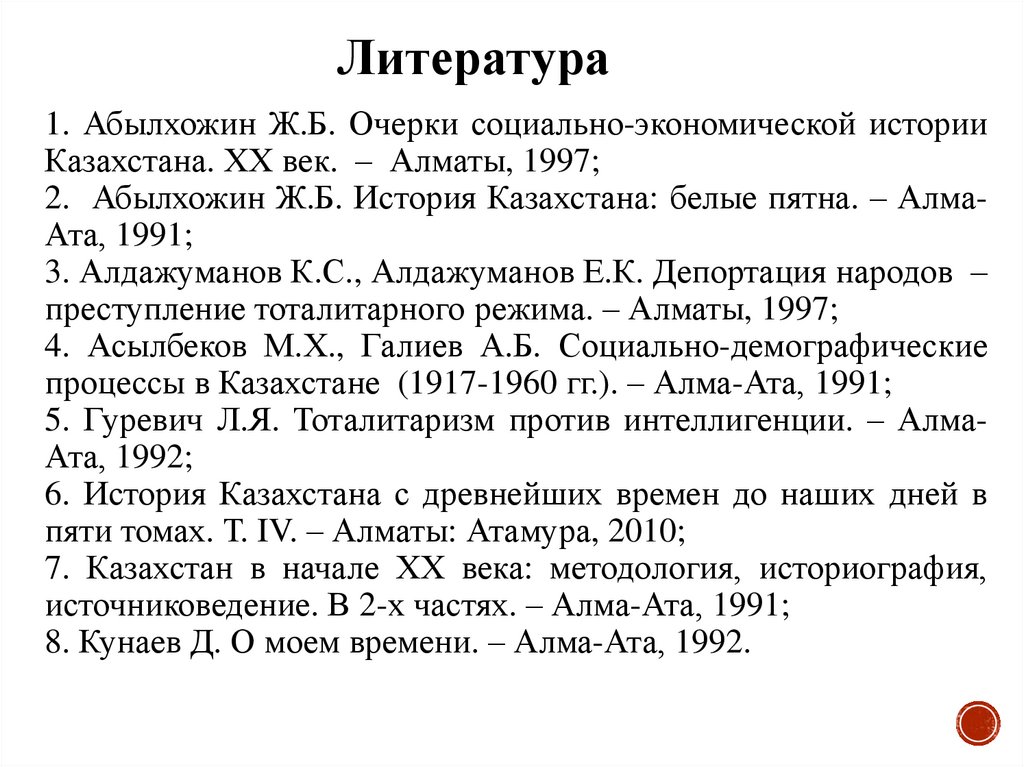 Литература1. Абылхожин Ж.Б. Очерки социально-экономической истории