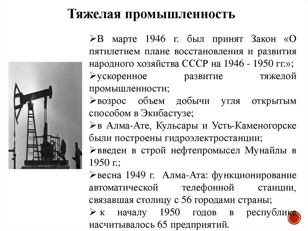Тяжелая промышленностьВ марте 1946 г. был принят Закон «О