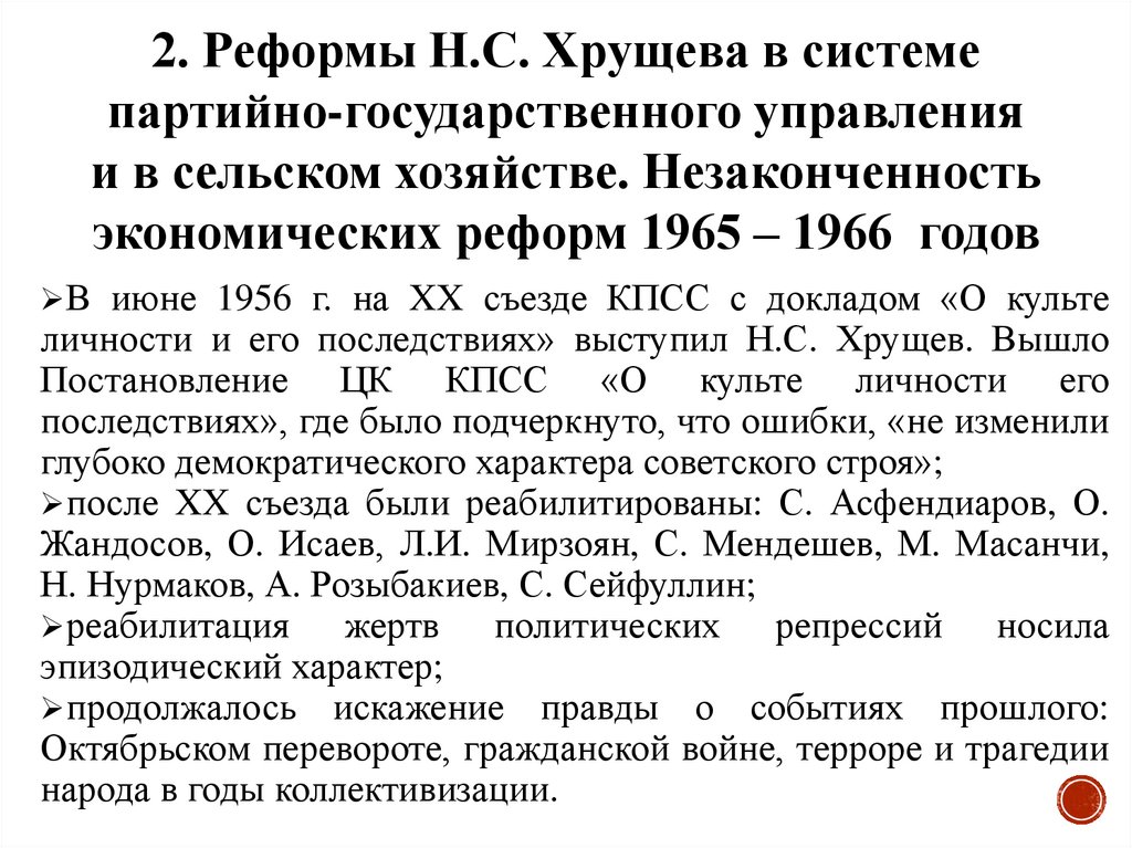 2. Реформы Н.С. Хрущева в системе партийногосударственного управления и в сельском