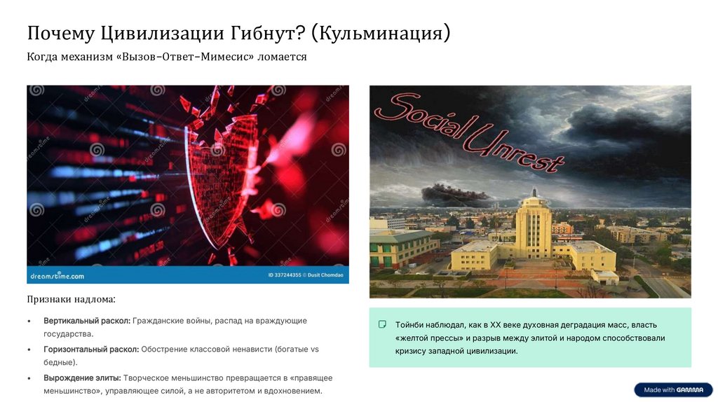 Почему Цивилизации Гибнут? (Кульминация)Когда механизм «Вызов-Ответ-Мимесис» ломается