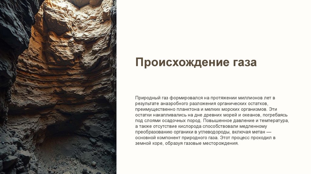 Происхождение газаПриродный газ формировался на протяжении миллионов лет в