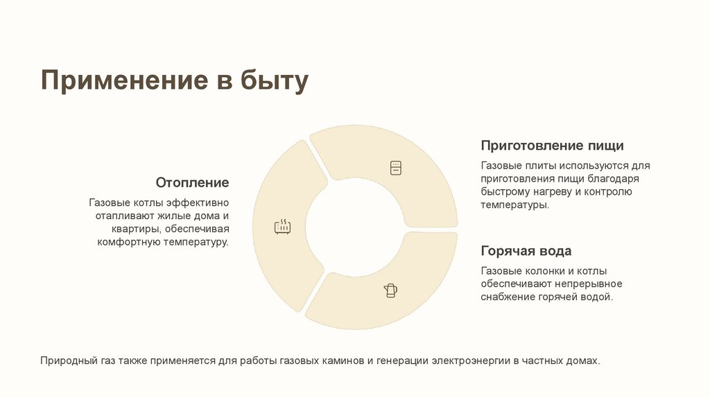 Природный газ также применяется для работы газовых каминов и генерации электроэнергии в частных домах.