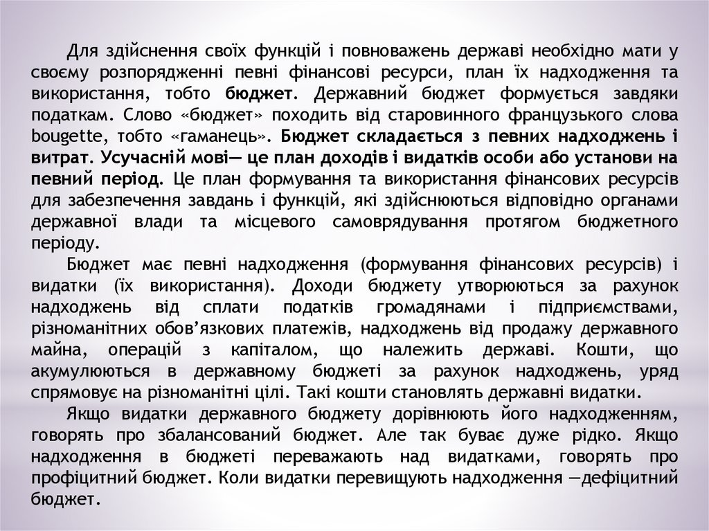 податкам. Слово «бюджет» походить від старовинного французького слова