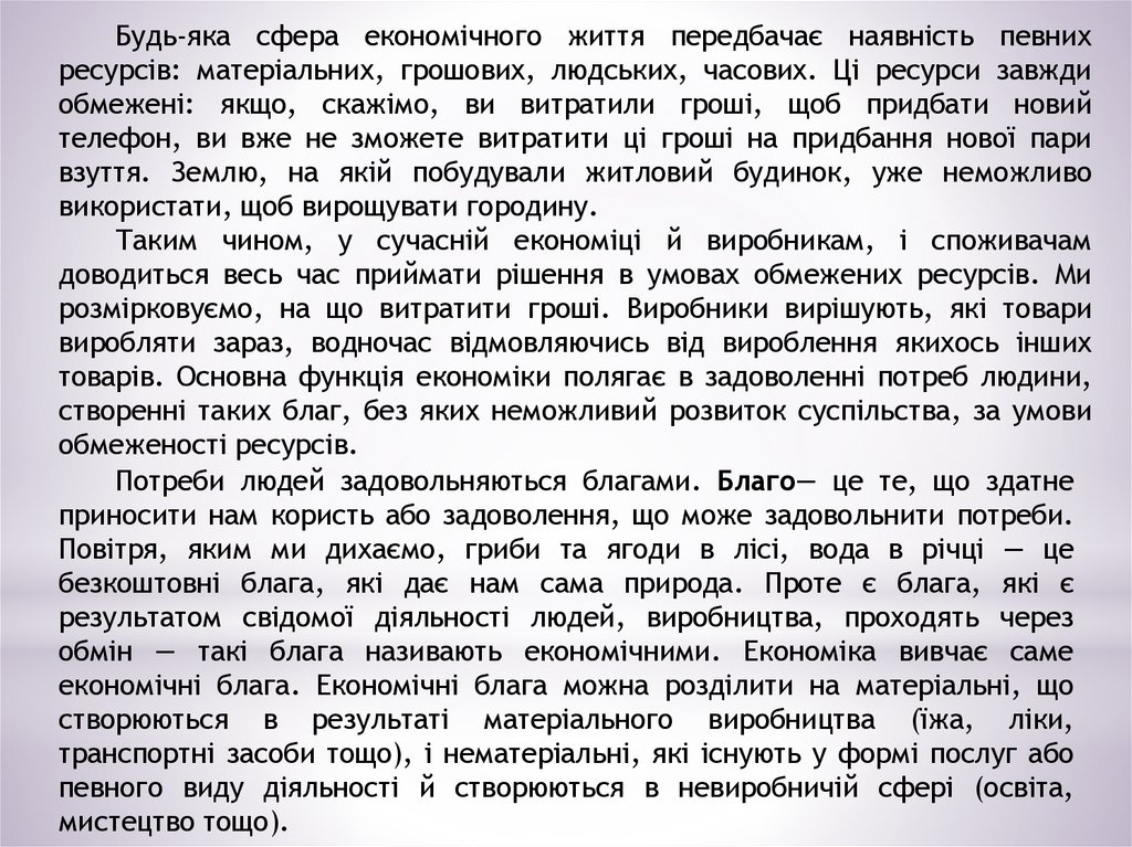 Будь-яка сфера економічного життя передбачає наявність певнихресурсів: матеріальних, грошових, людських, часових. Ці ресурси завжди