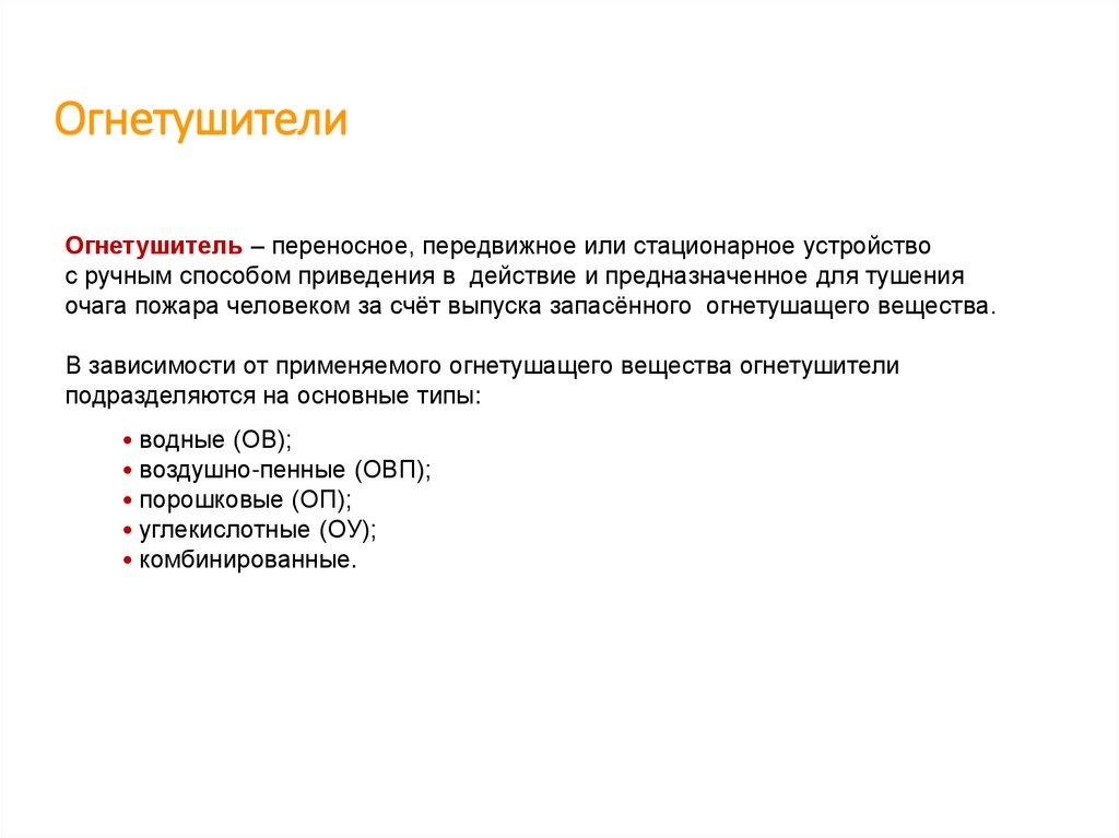 и правила пользования ими. Огнетушащие вещества.