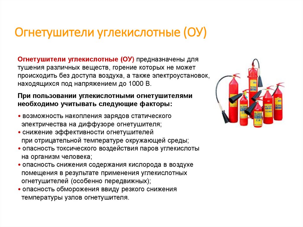пожаротушения (огнетушители, вода (при отключенном электрооборудовании)