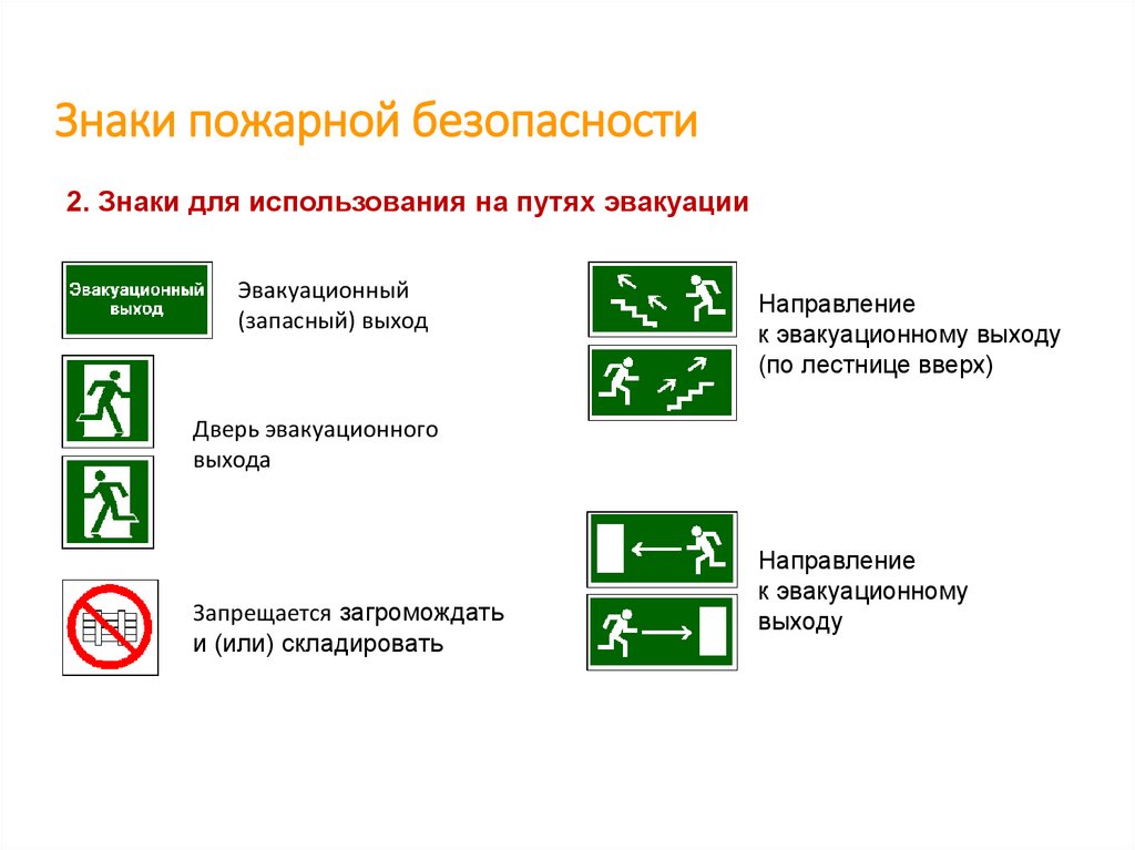 Знаки пожарной безопасности2. Знаки для использования на путях эвакуации