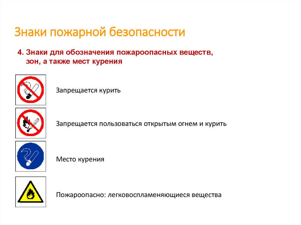 Знаки пожарной безопасности4. Знаки для обозначения пожароопасных веществ,