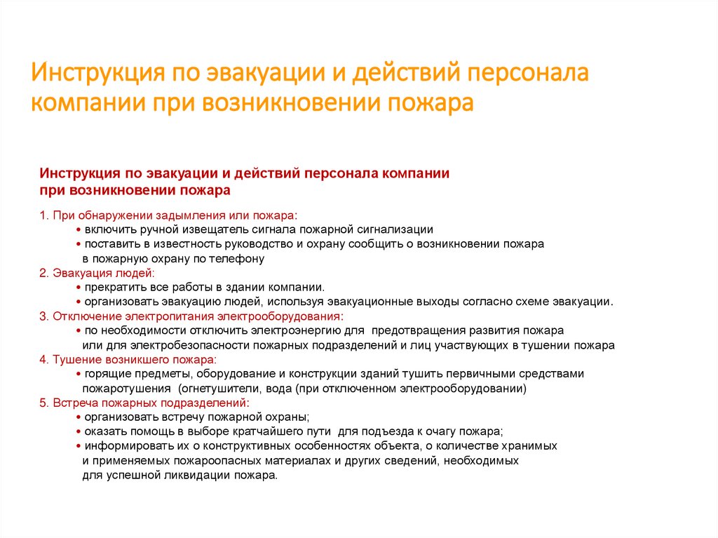 Инструкция по эвакуации и действий персонала компании