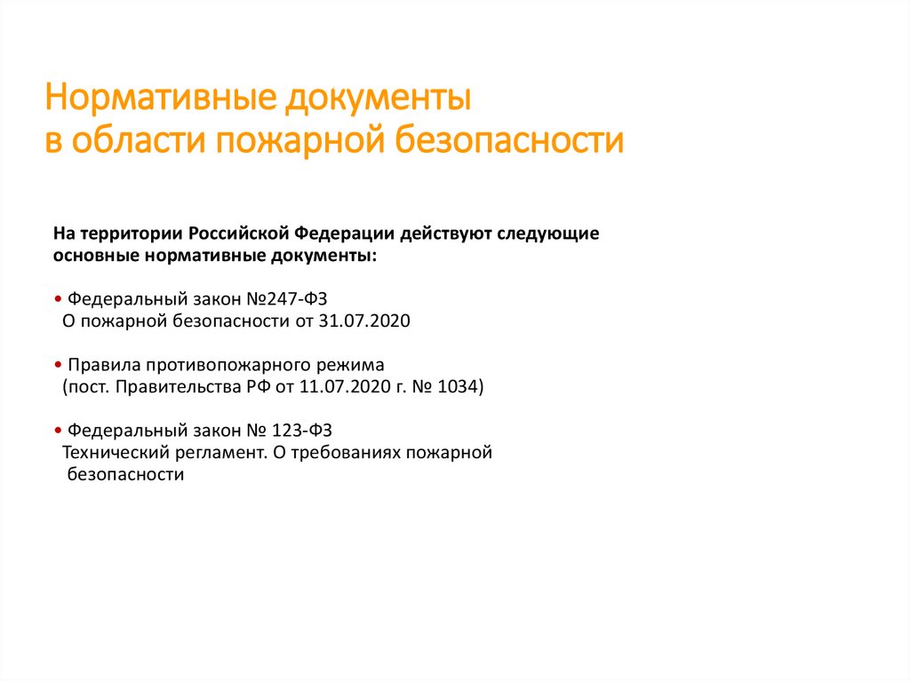 Нормативные документыв области пожарной безопасности