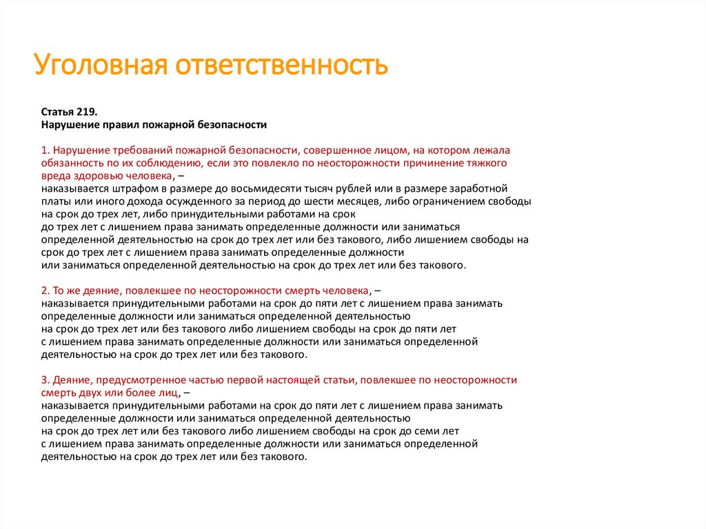 Уголовная ответственностьСтатья 219.