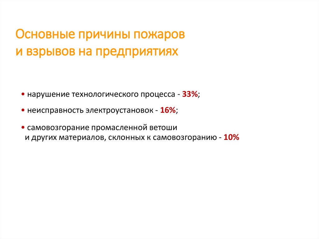 Основные причины пожарови взрывов на предприятиях