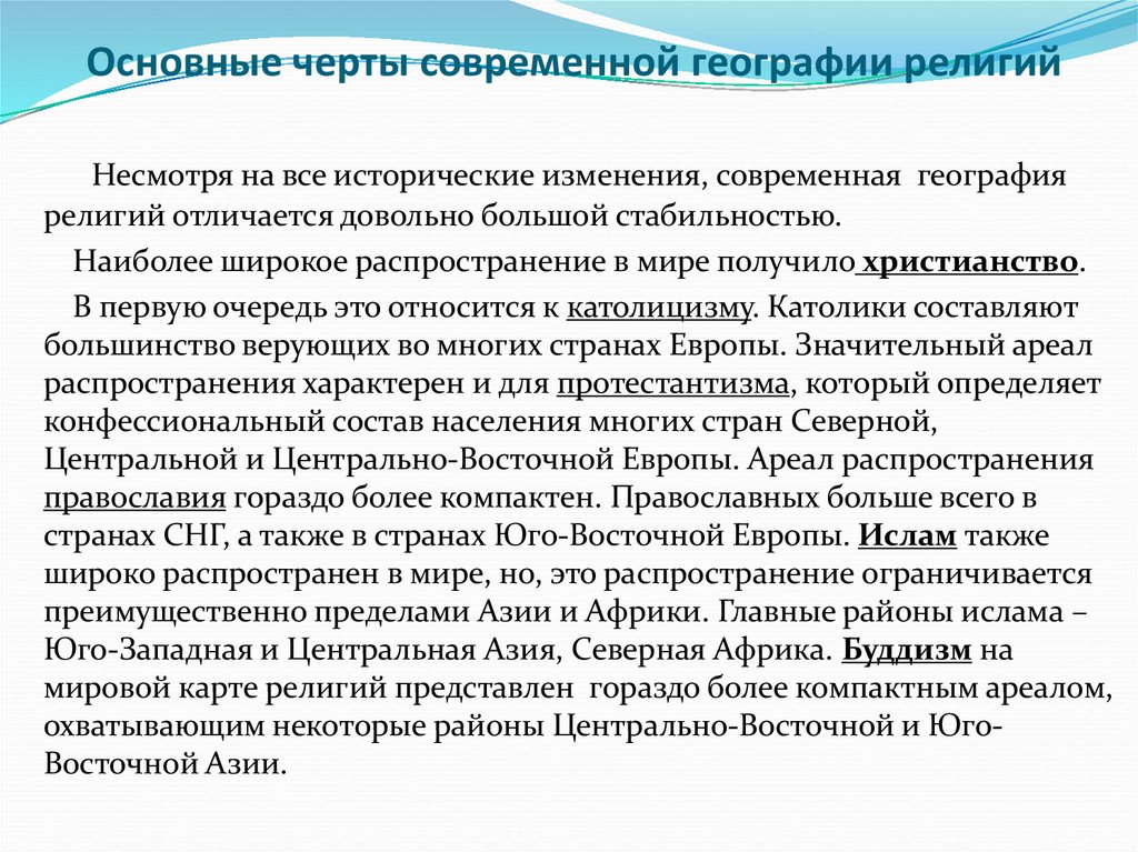 Несмотря на все исторические изменения, современная географиярелигий отличается довольно большой стабильностью.