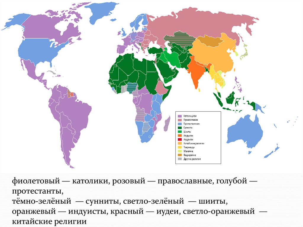 фиолетовый — католики, розовый — православные, голубой —протестанты,