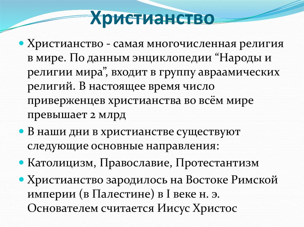 Христианство - самая многочисленная религияв мире. По данным энциклопедии “Народы и